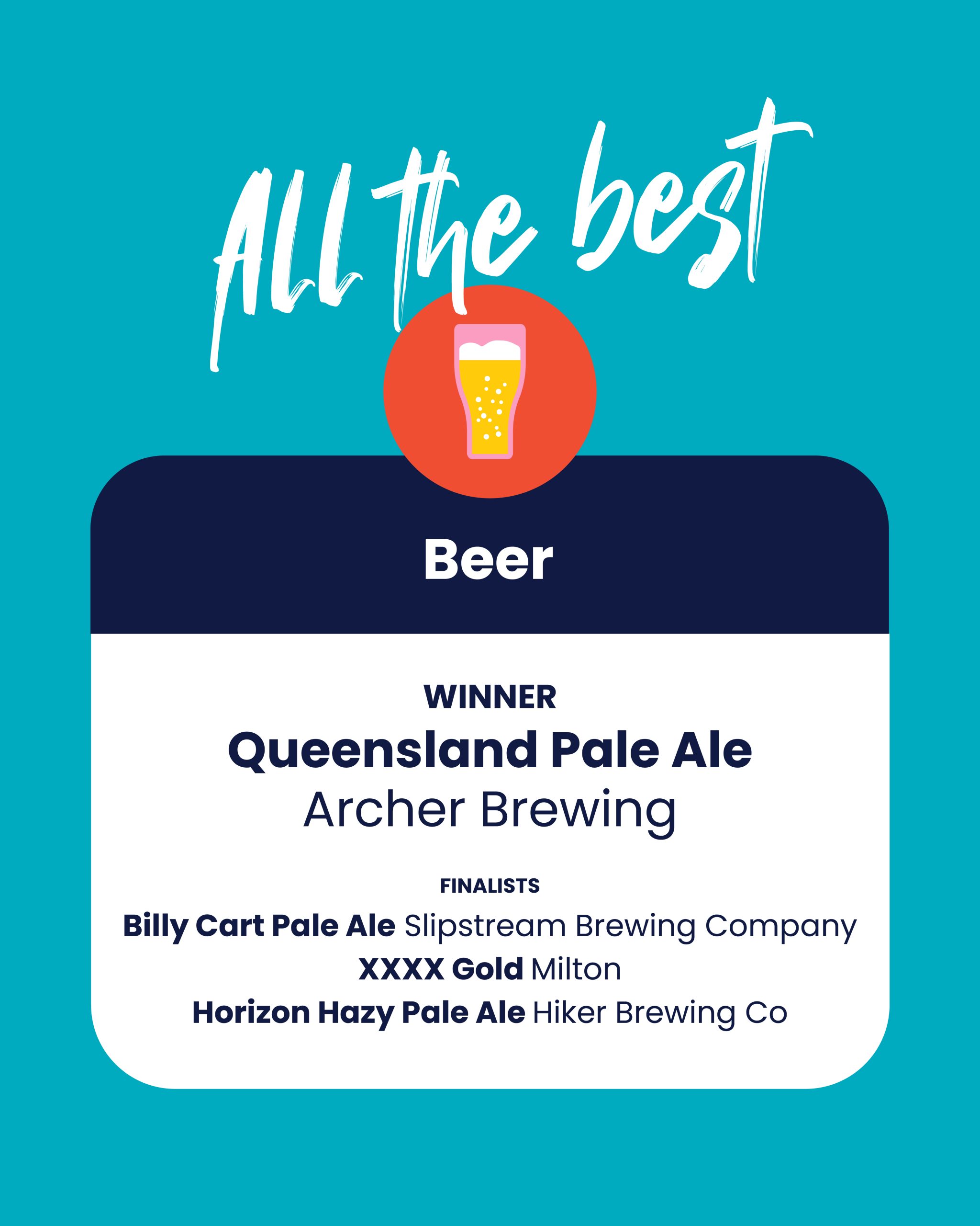- Best Beer: Qld Pale Ale by Archer Brewing Company (Wilston)
